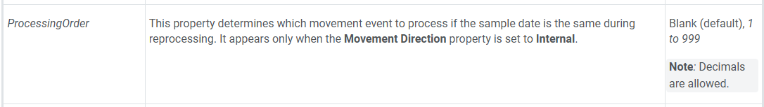 Which movement is processed first, ProcessingOrder = 1 or 999?