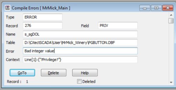 I want to use the iPrivilege value as the Privilege Level of a component, but I'm getting a "Bad integer value" error...