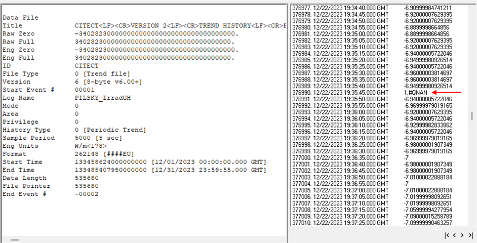 Thanks to your Trend Reader tool I can see the problem - a data sample logged as 1.#QNAN