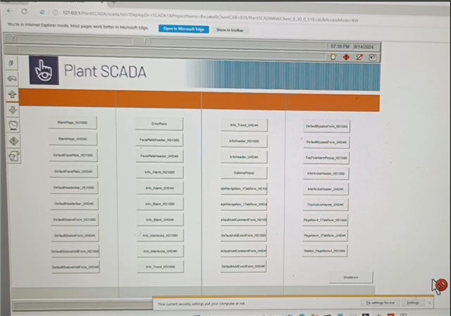 I have a problem with my SCADA WEB CLIENT CITECT 2020R2, I make all configuration for IIS, authorisation configuration, web deployment, activX activation, compilation but when I try to acces whith IE in microsof EDGE, I have this interface.