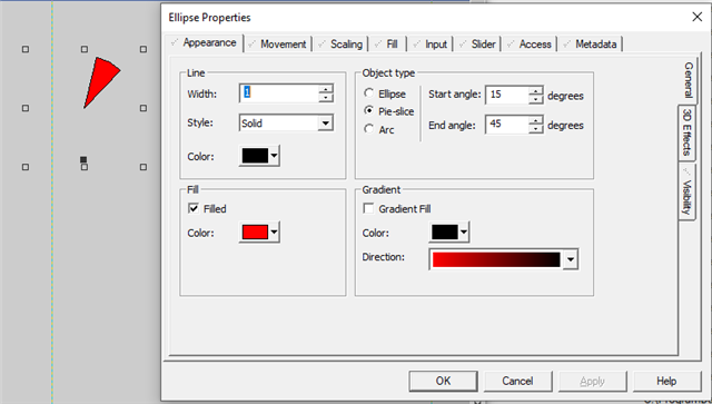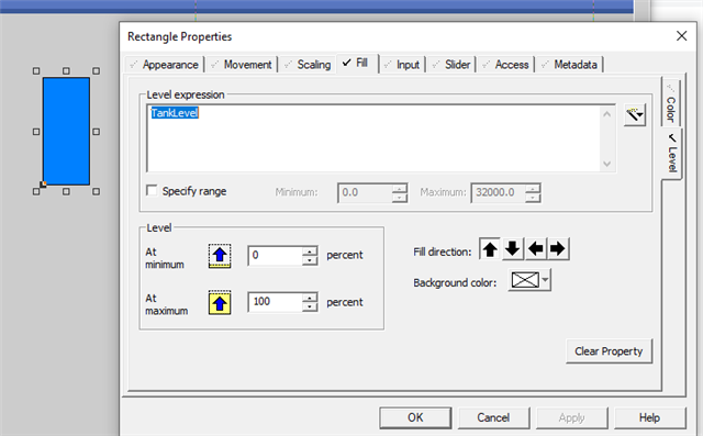 For simple bar charts, you can use the Fill properties with basic objects. For example, a rectangle can become a bar graph by using the Fill (Level) properties: