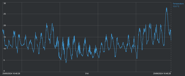 That spike at the end – that’s a record temperature recorded in my PI system. You can it is far above the average high which is around 11 degrees Celsius at this time of year.