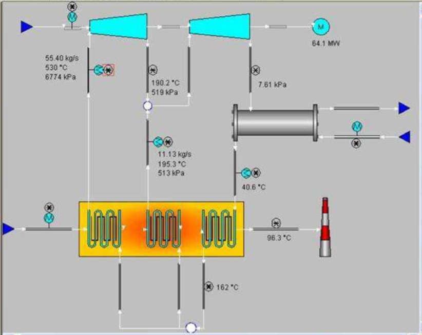 A steam cycle is another use case with a connected flow model to validate the numerous sensor readings via mass and heat balance.