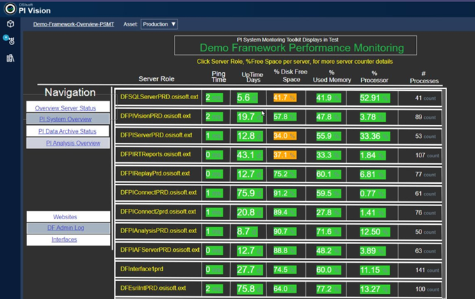 Below are some screens from PI System Monitoring (PSM):