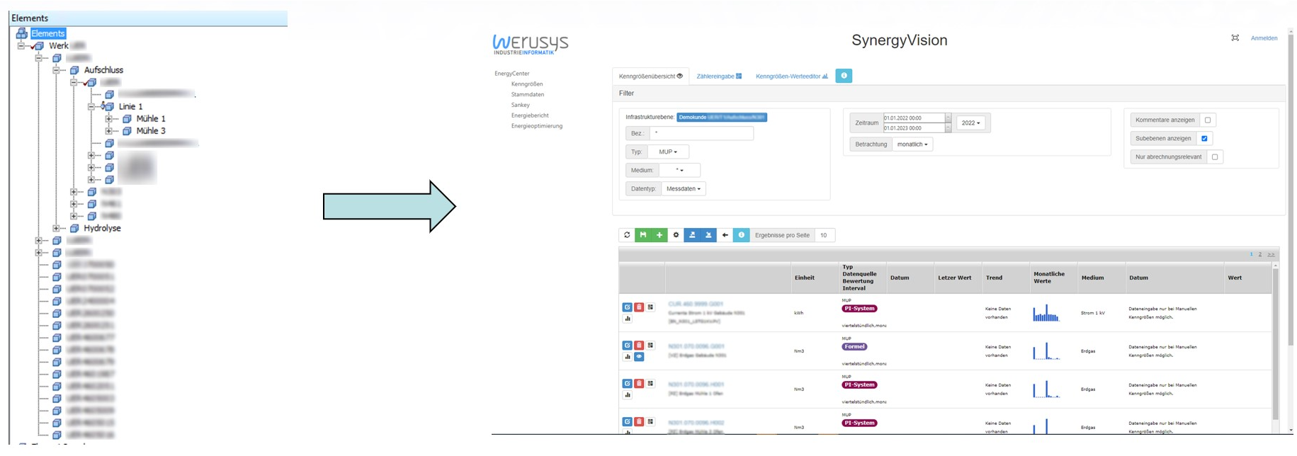 With the help of automatic master data synchronization, all data and plant structures from the PI system are automatically transferred to the energy:center. This means that all existing data can be seamlessly integrated into the energy management system. Further calculations are now made within the energy:center and used in energy controlling and energy management. This enables the system to manage energy targets, cost centers, energy suppliers and prices (optional connection to energy exchanges) in direct connection with all existing PI data.