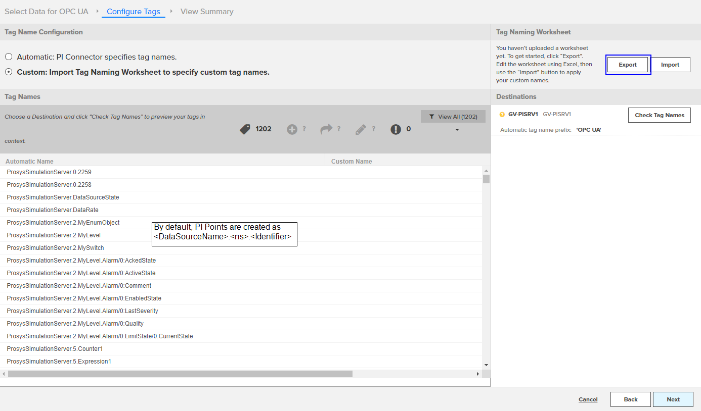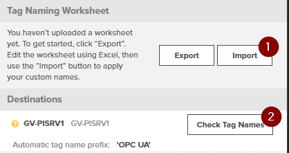 Save the Tag Naming Worksheet and Import it back to the connector using the Import function and verify that the connector accepts the custom name.