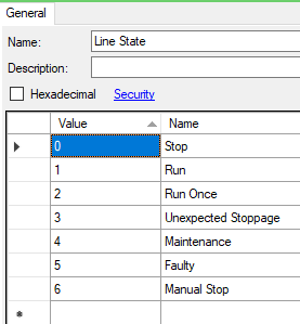 The various states of the line are organized in a AF enumeration set, which is used by the "Current State" of the Line element.