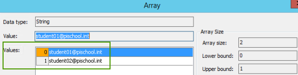 So now I had my array of values, but how to build the email list from this? Recently I was playing with Format function in the String Builder data reference and noticed it had the ability to handle arrays (function syntax like, Format(array, delimiter)), but I thought at the time, “what would you use that for?” Well now I know of at least one case! The final step here was to add a String Builder attribute called Email List and use it to convert the array above into a comma separated list: