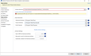 Click the “License information and generation” button above the error to build the MSF and upload it to the customer portal to download a license. You need to be a Super User or tenant Admin to generate licenses.